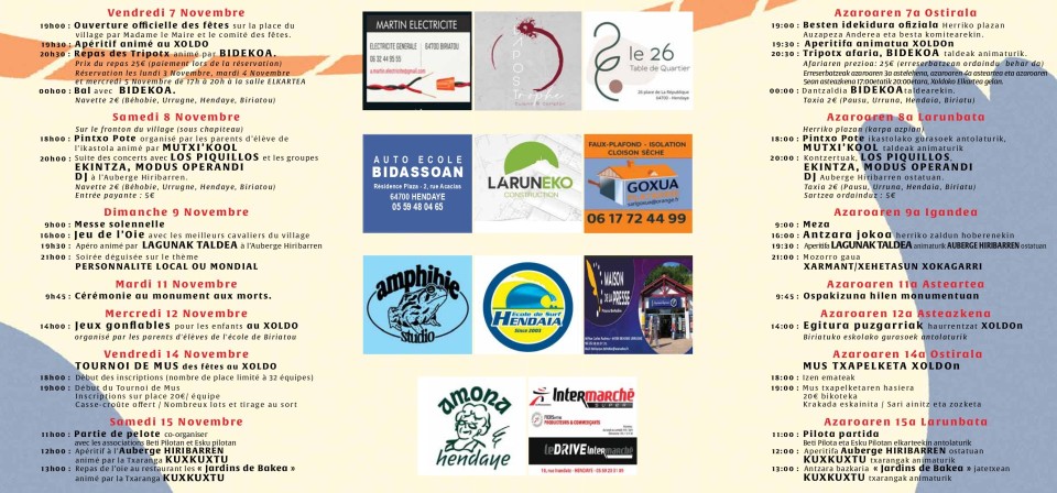 Les fêtes de la Saint Martin se dérouleront à Biriatou du 07 au 15 novembre 2025.