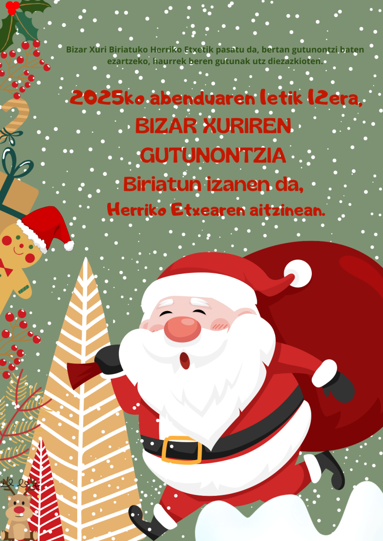 BIZAR XURIREN GUTUNONTZIA Biriatun izanen da, Herriko Etxearen aitzinean.